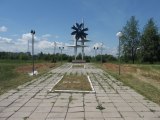 Описание: На самом деле вот так это выглядит, если отойти назад к дороге, то влево уходит аккуратно уложенная дорога из кирпича, а памятник почему-то обелили...