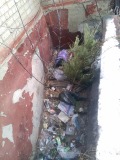 Описание: Помойка возле дома Сумская 3, вечер, освещения тут в общем-то нет, мусор в темноте не видно.