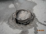 Описание: Люк возле подземного перехода. В таком состоянии уже больше полутора лет. Интересно, это проверка на прочность? Или там кто-то поспорил: сколько же простоит пока не провалится?