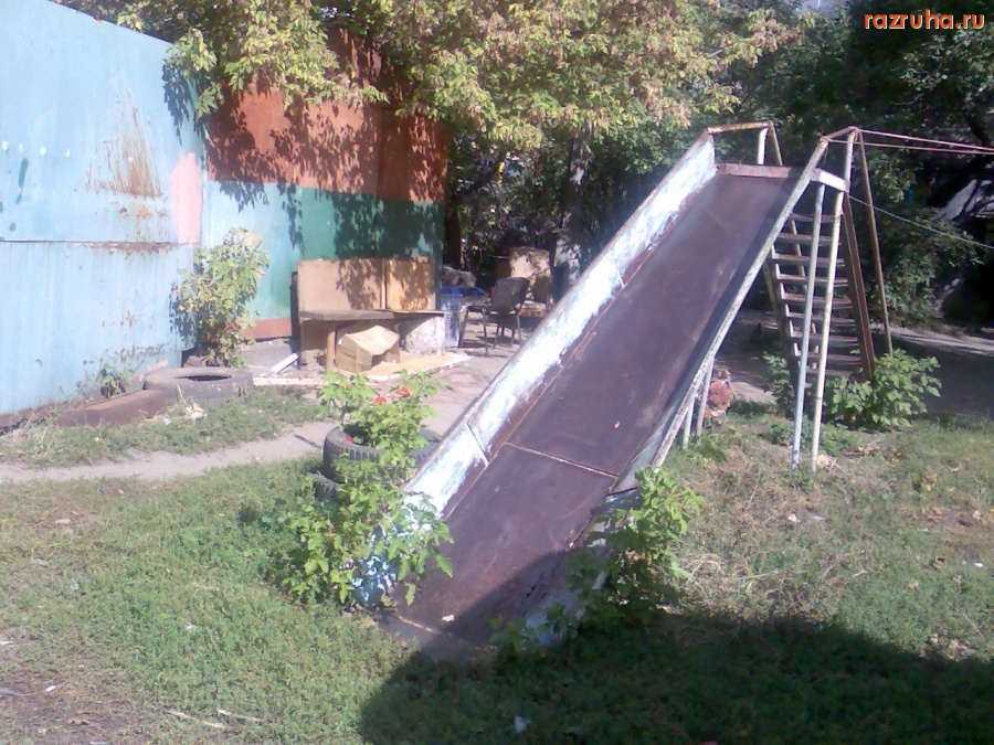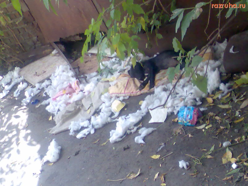 Даже кошка дохлая валяется, но зато прямо у помойка горка, чтоб дети катались!