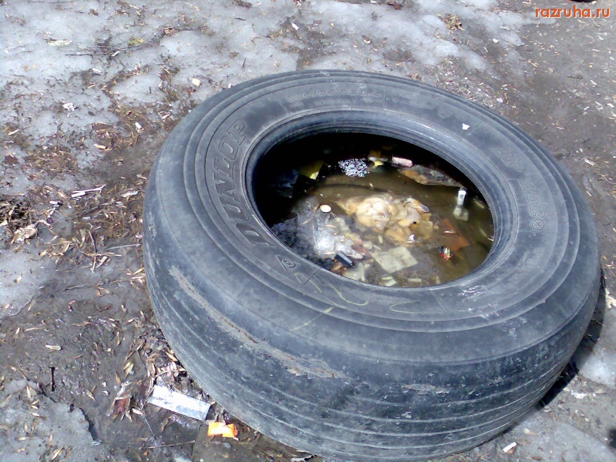 Лежит во дворе старая покрышка, в которую подкидывают мусор, тут снег стаял, а вода осталась внутри, получилась такая насмешка природы.