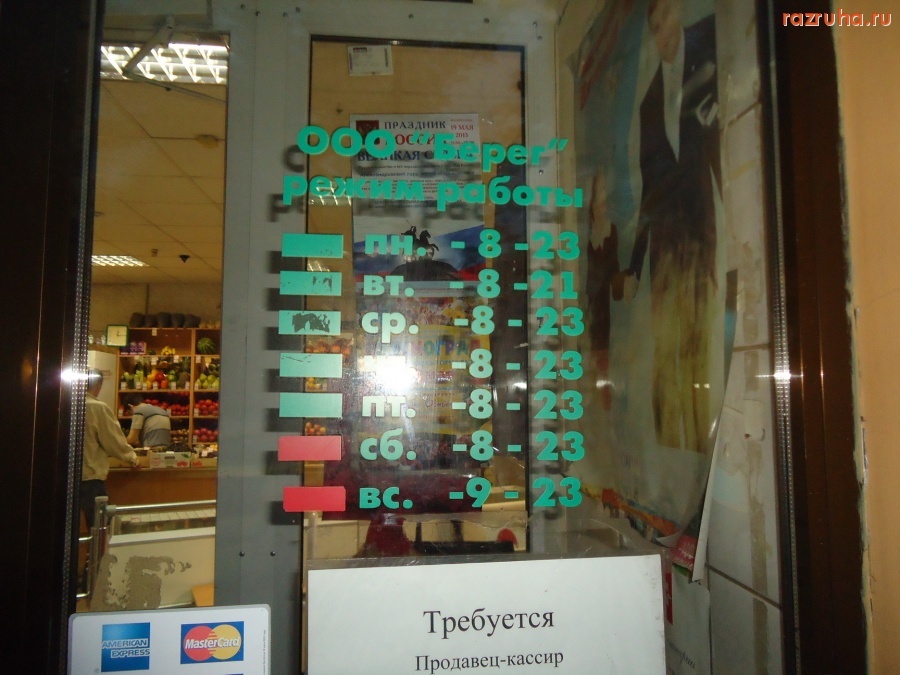 На вывесках указаны часы работы - до 23 часов, однако на двери они прицепили - "24 часа" и - полный порядок! Все-равно никто им не указ.