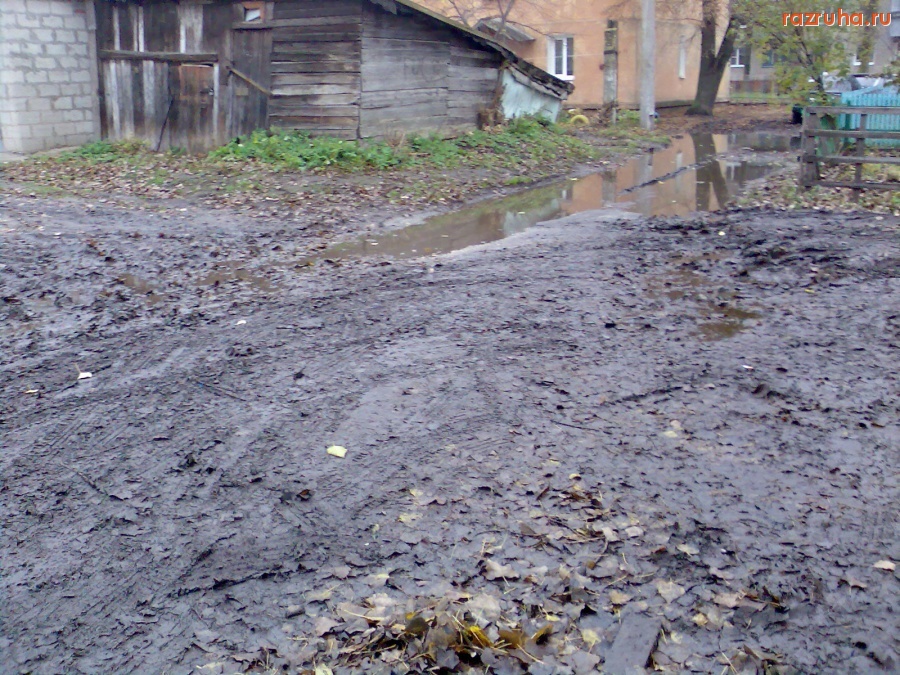 Россия , Курск , ветхое жильё , грязь , двор , лужа , дождь , дом