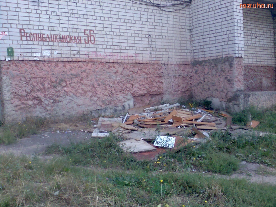 Возле 130 детского сада на улице Республиканской есть площадка. Тут возле ржавых турников осколки бутылок. Рядом прямо у детского сада воняет помойка и лежит мусор, да и на всей площадке по периметру в некоторых местах мусор встречается.