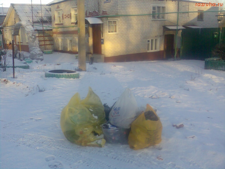 Вот на улице Театральной. Мусор тут, как распространено в частном секторе, складывается перед домом и лежит, пока не заберут. Коммунальщики не могут сделать нормально. Им нравится неэффективный и варварский способ, а населению лишние расходы, что коммунальщики не могут додуматься сделать помойку.