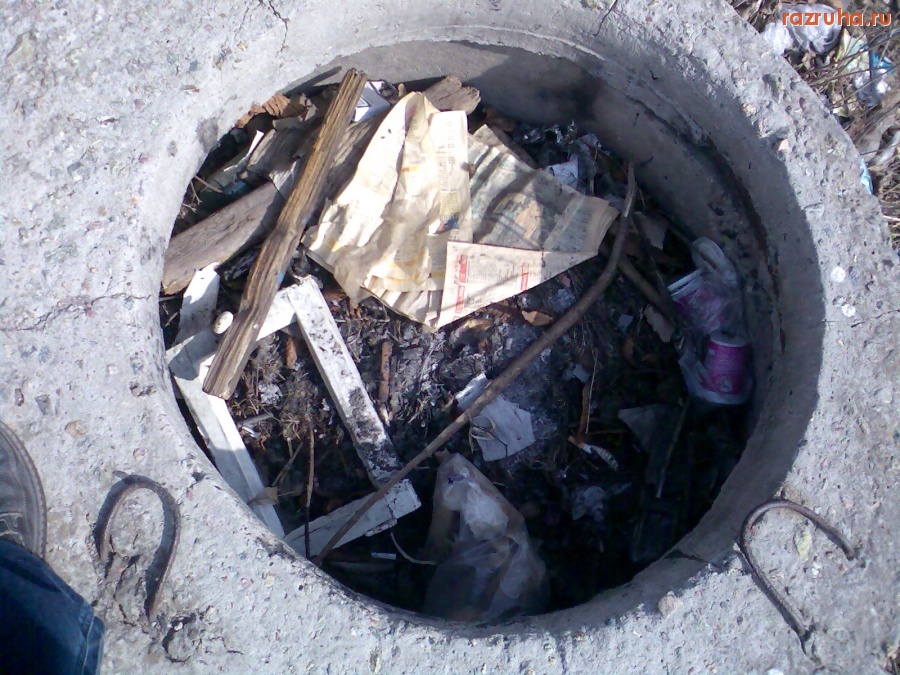 Тут не только мусор, но и забитые мусором люки и остатки забора.