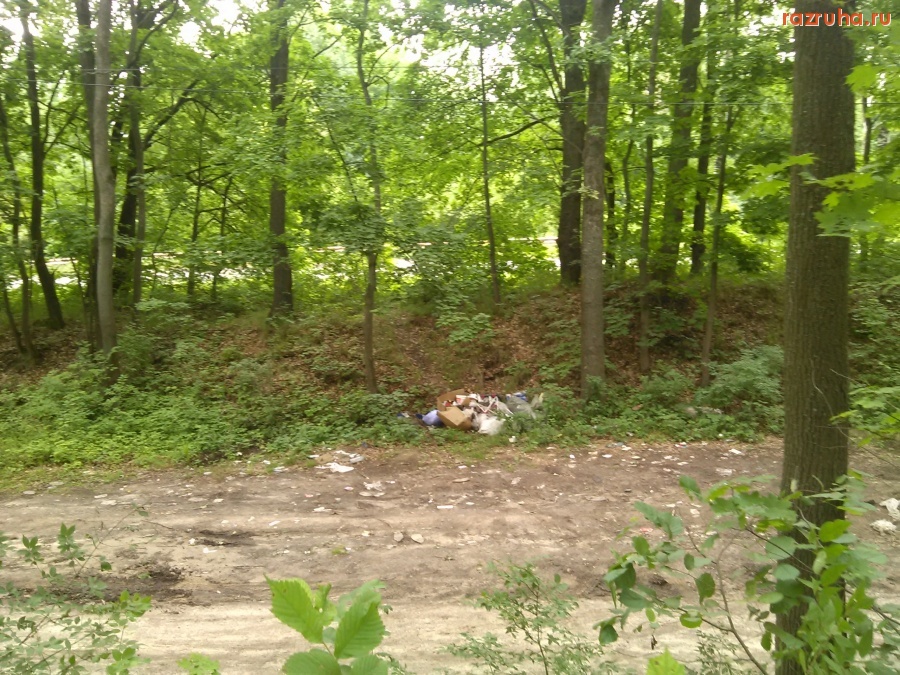 Возле дороги Курск-Касторное (продолжение улицы Сумской) в лесу, где параллельная ей дорога, лежит мусор в двух местах.