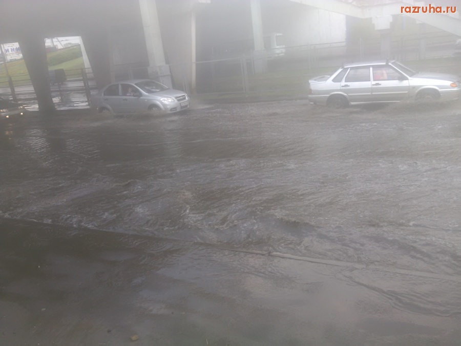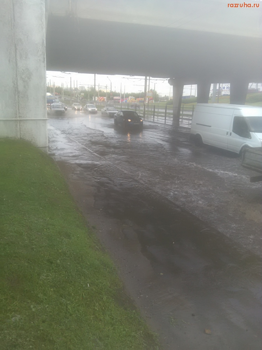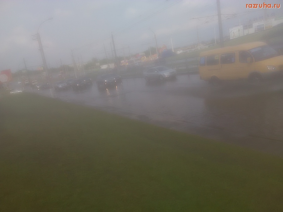 Сегодня был не очень сильный дождь. Вот что было под Сумским мостом. Огромная лужа создала пробку.