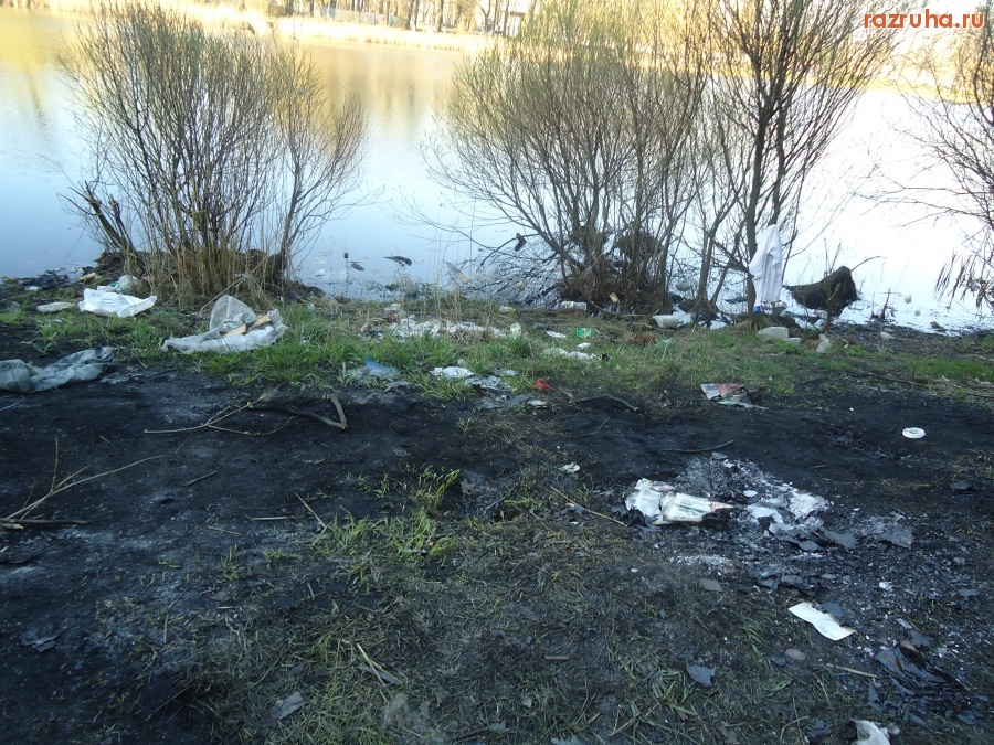 А в Петровском парке, на берегу Петровского пруда открылся сезон губителей природы - любителей костров и шашлычников - мусорщиков.