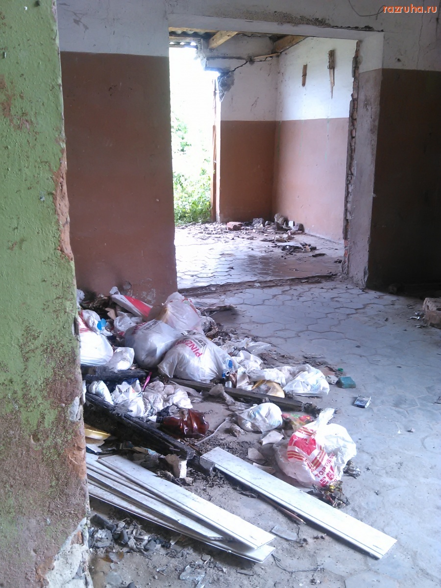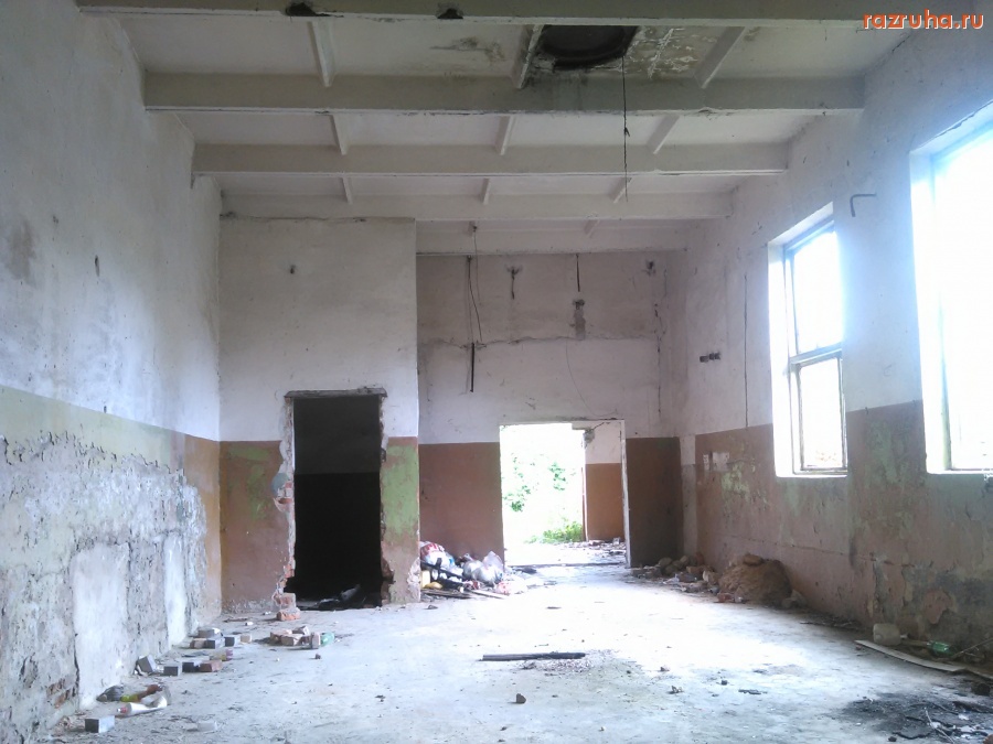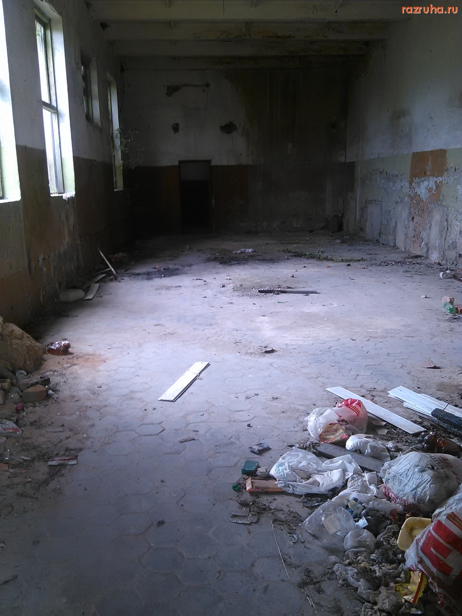 В здании всё растащено хозяйственными людьми, только отличную плитку с пола не забрали, лень отдирать что ли.