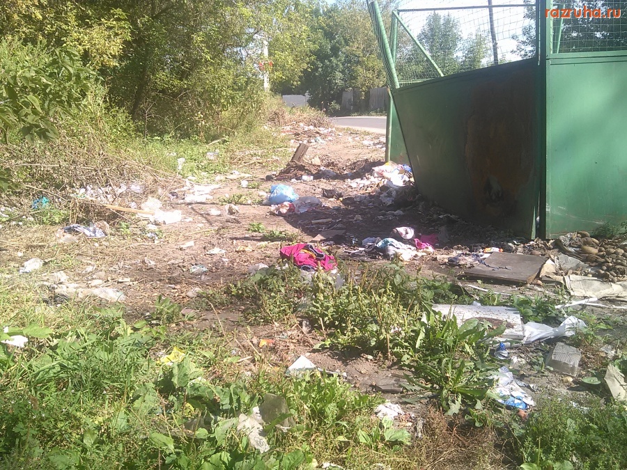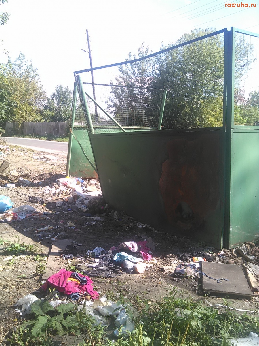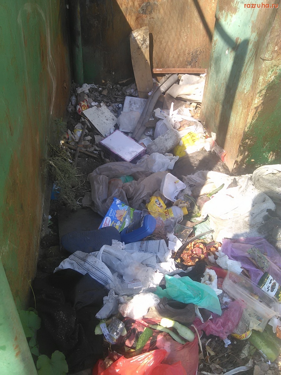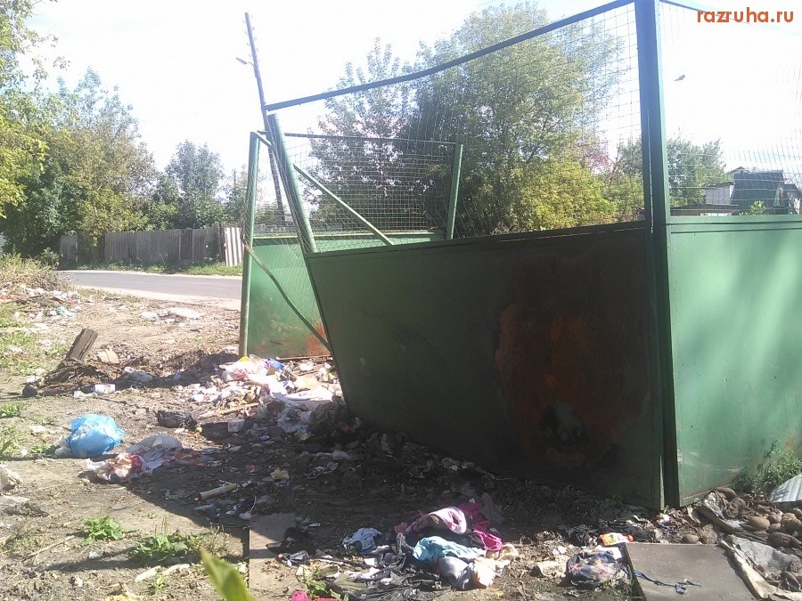 Контейнерная площадка возле дома Карла Маркса 77К1, грязно и руины сараев загаженные.
