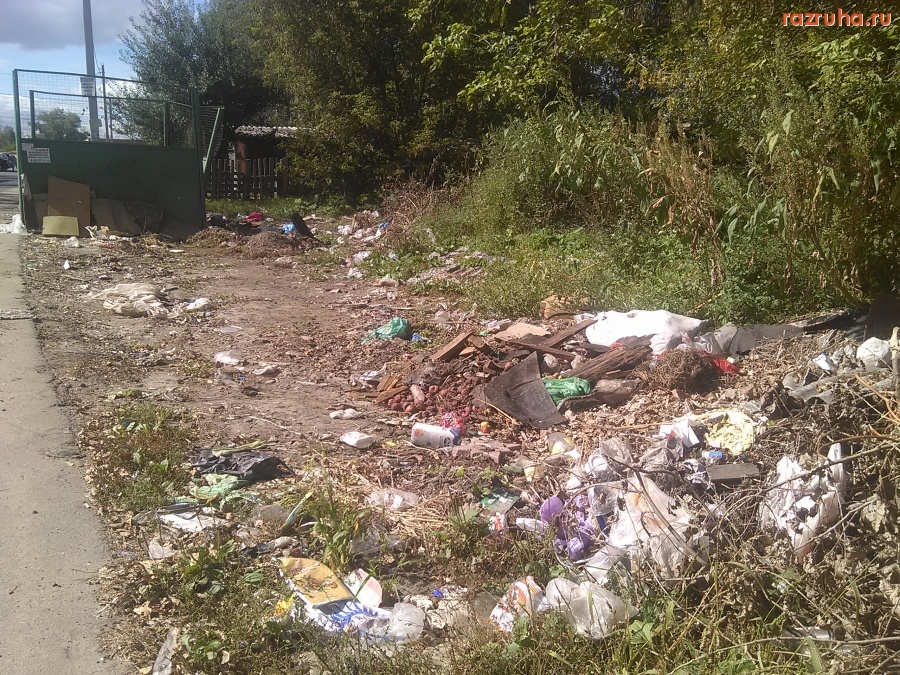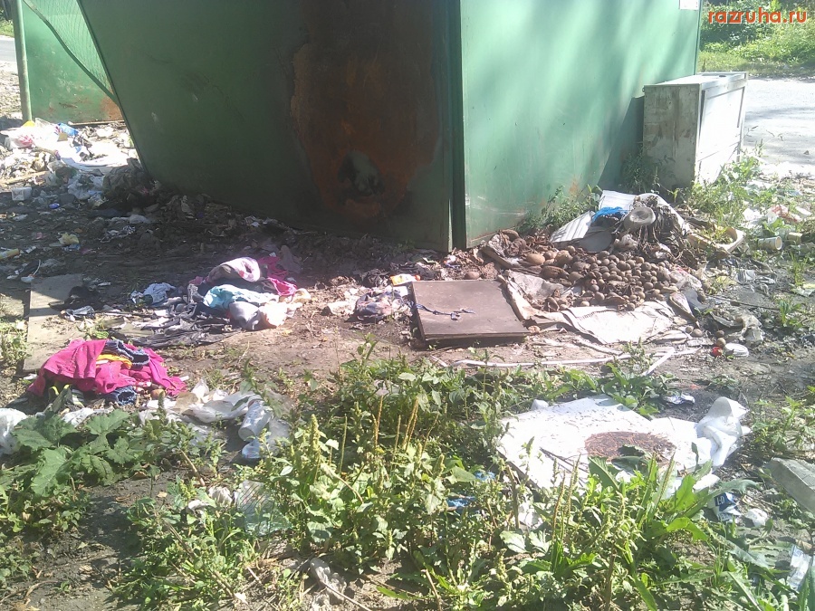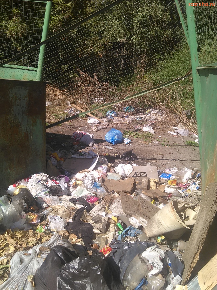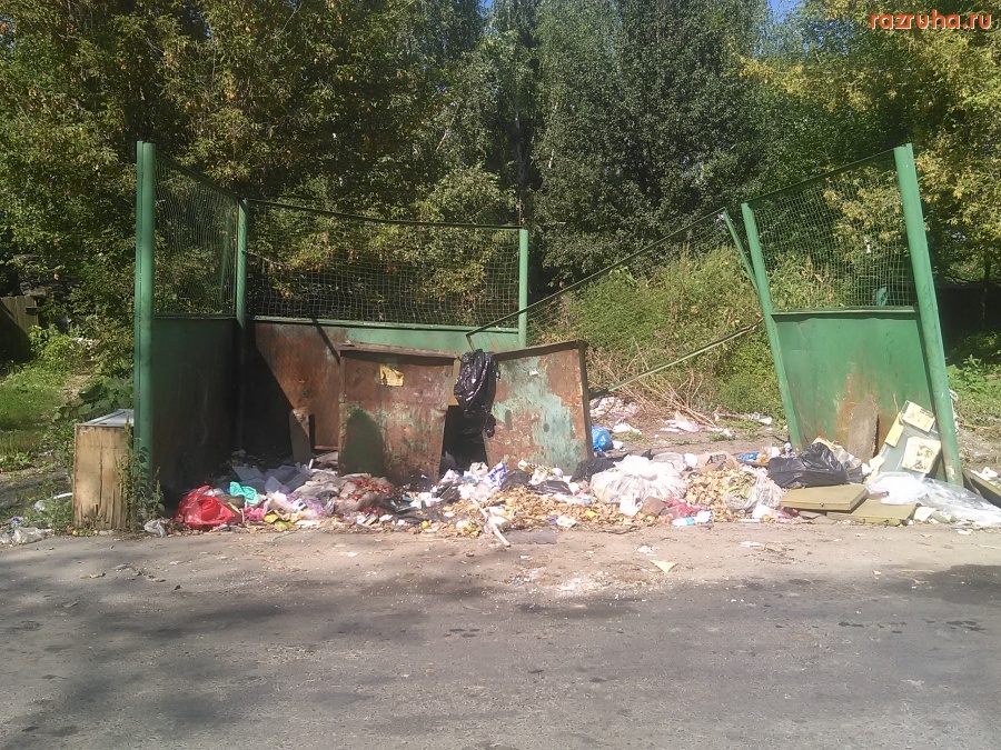 Контейнерная площадка возле дома Карла Маркса 77К1, грязно и руины сараев загаженные.
