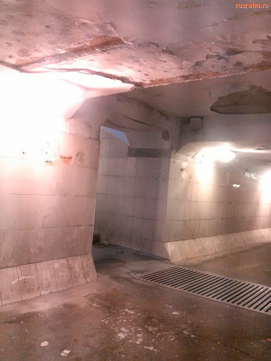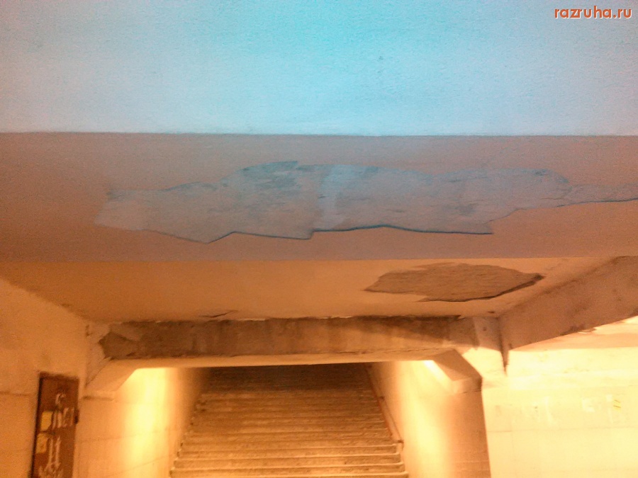 Россия , Центральный федеральный округ , Черноземье , Курская область , Курский район , Курск , Сеймский округ , улица Энгельса , подземный переход , потолок , штукатурка , сыпется