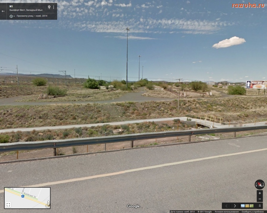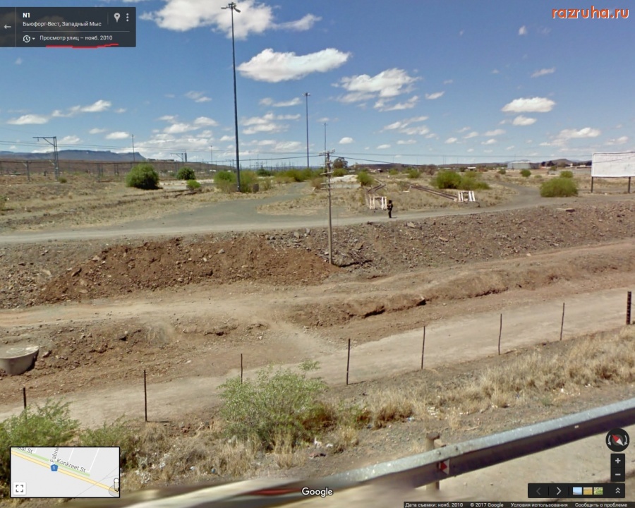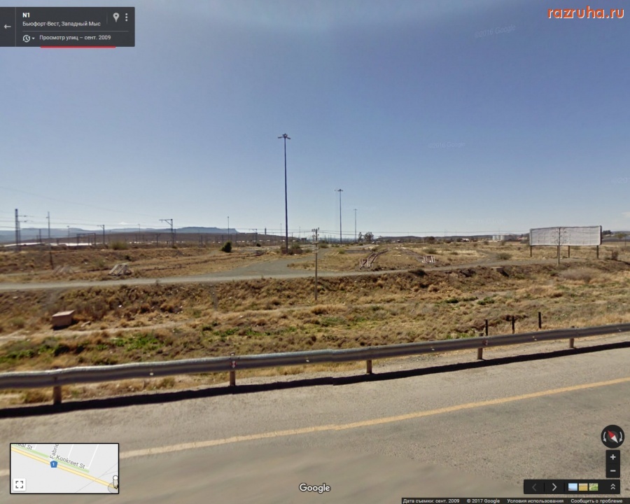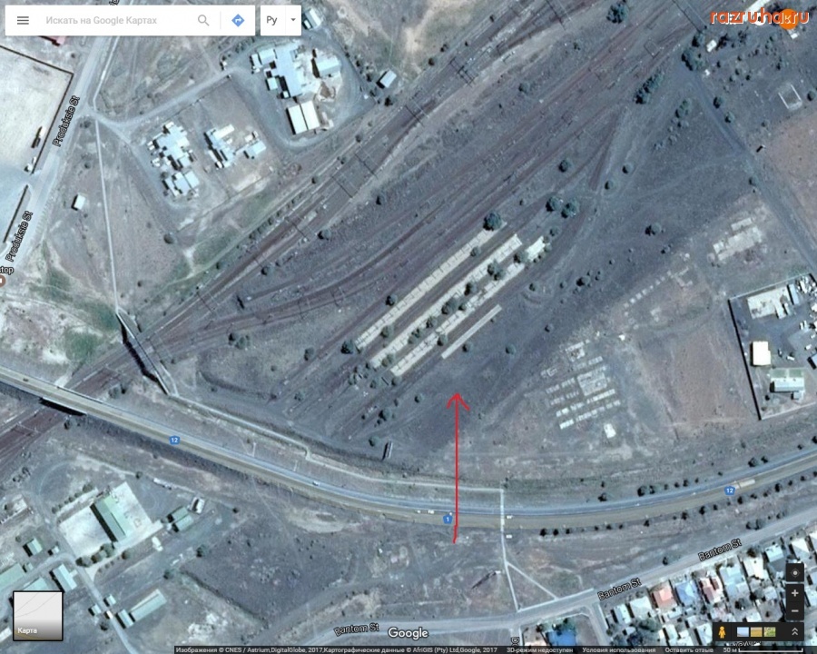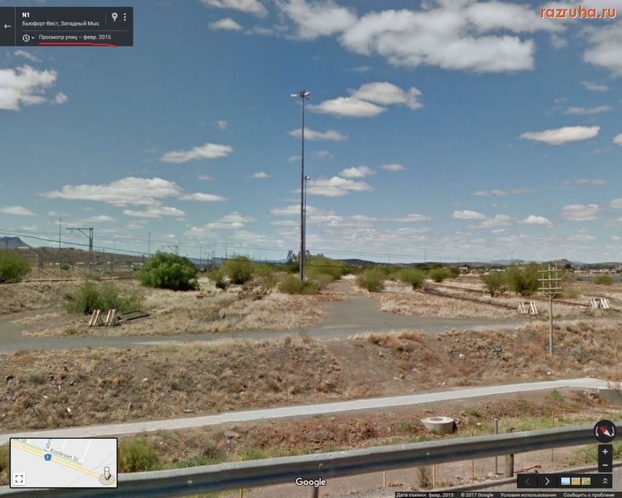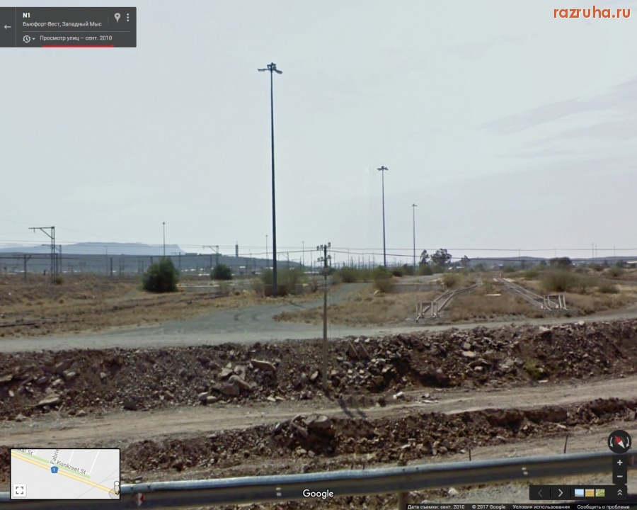 Южно-африканская фашистская империалистическая власть в недавнем прошлом терроризировала и грабила Анголу и Намибию как израильские империалисты Палестину. Теперь эта буржуйская власть ещё грабит и сам ЮАР. На восточной стороне железнодорожной станции в Бофорт-Уэсте (Западная Капская Провинция, Южно-Африканская Республика) возле дороги 1 пути и платформы, которые не используются, а между рельсов растут деревья.
