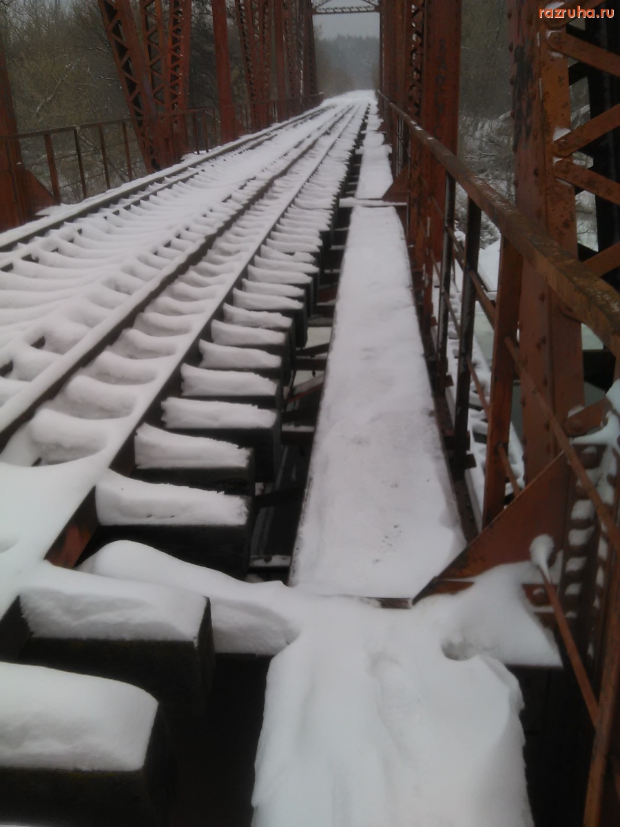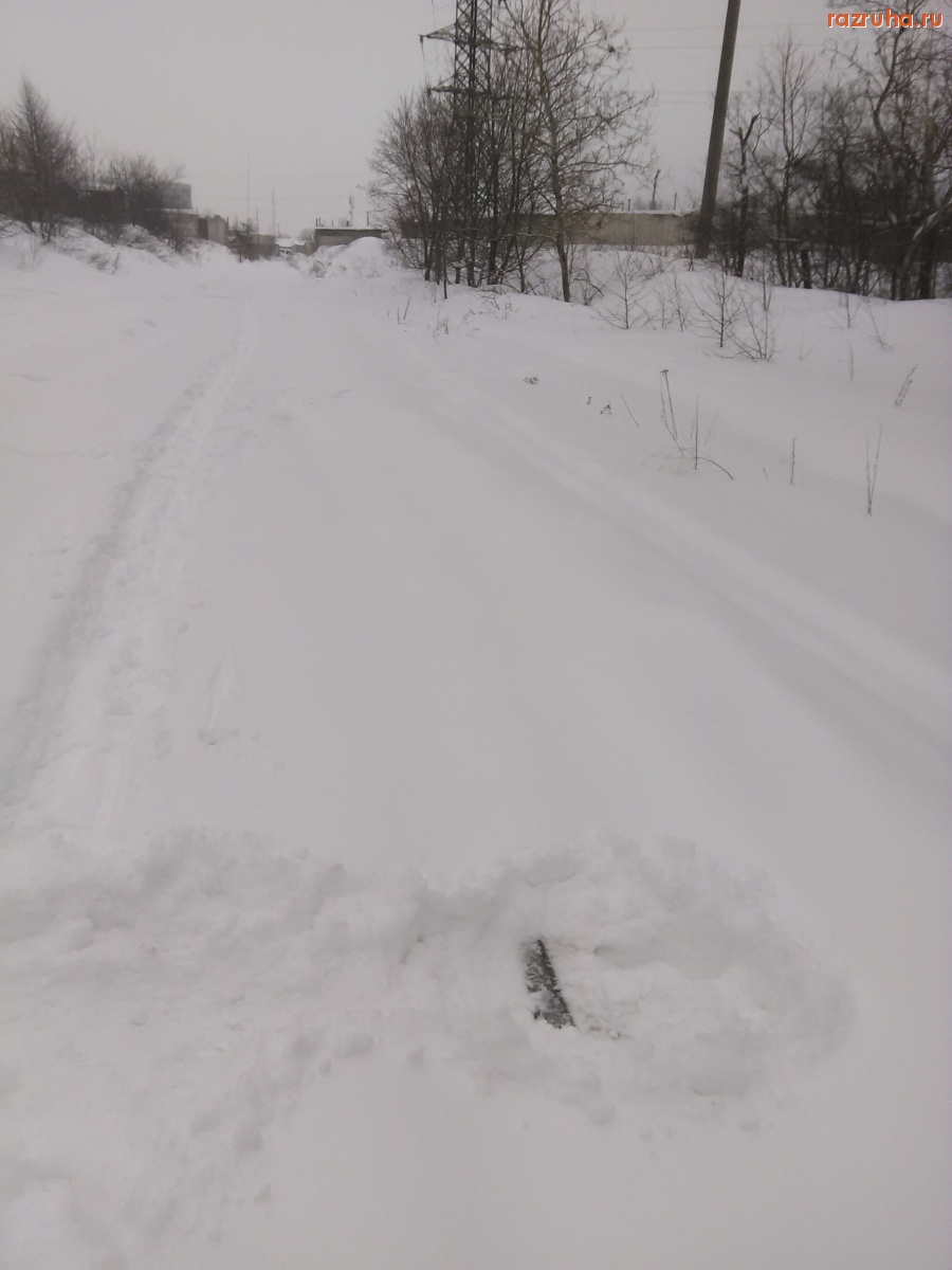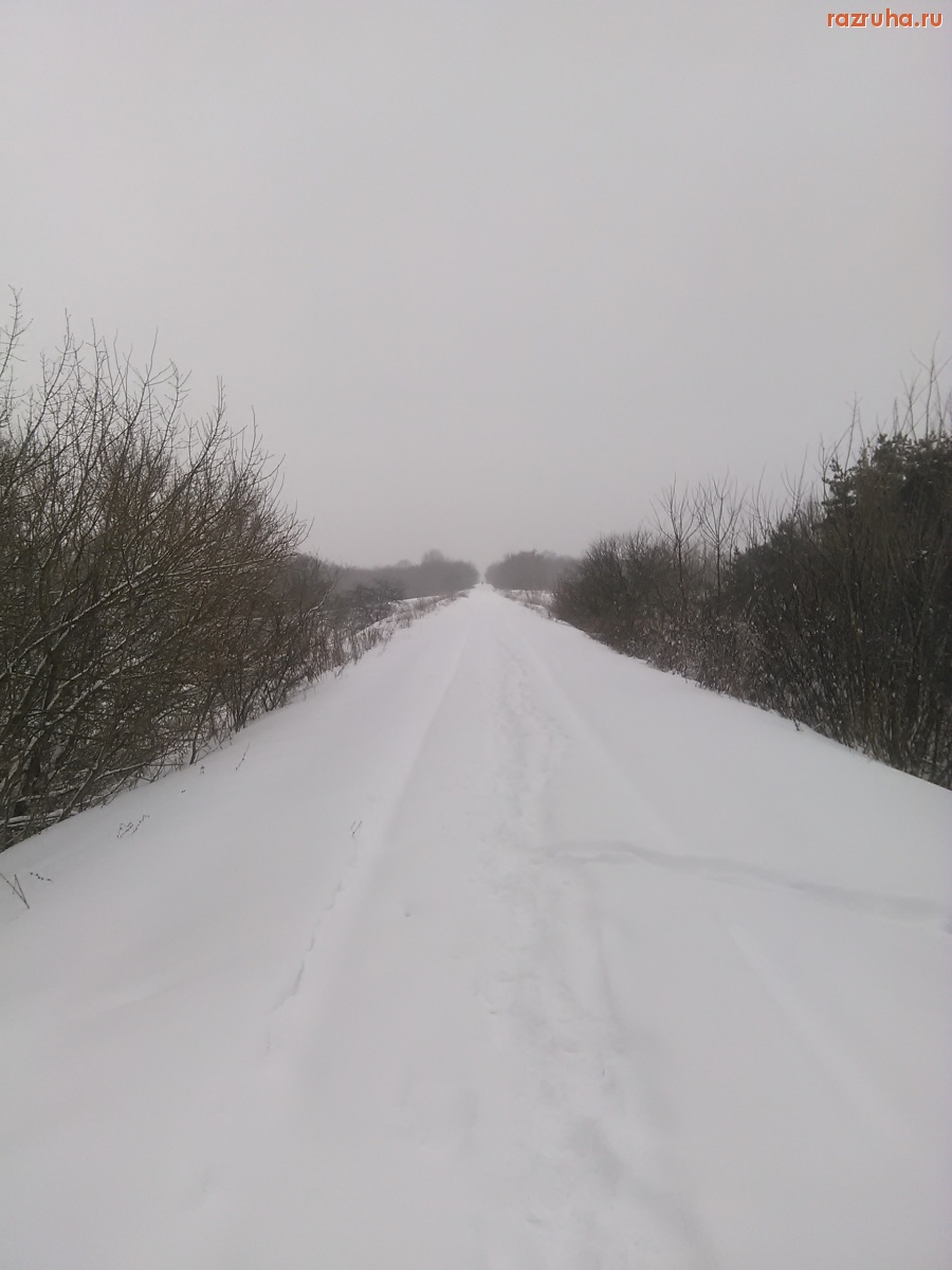 Железная дорога от станции Рышково к станции Заводская и дальше на ЖБИ. Вся в снегу. И следов поезда не видно.