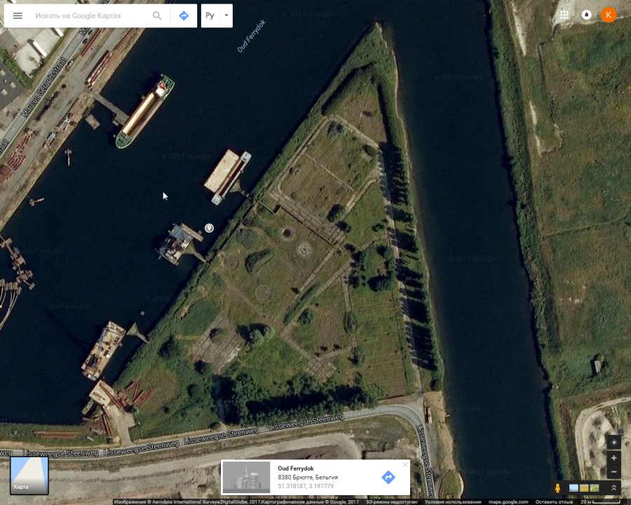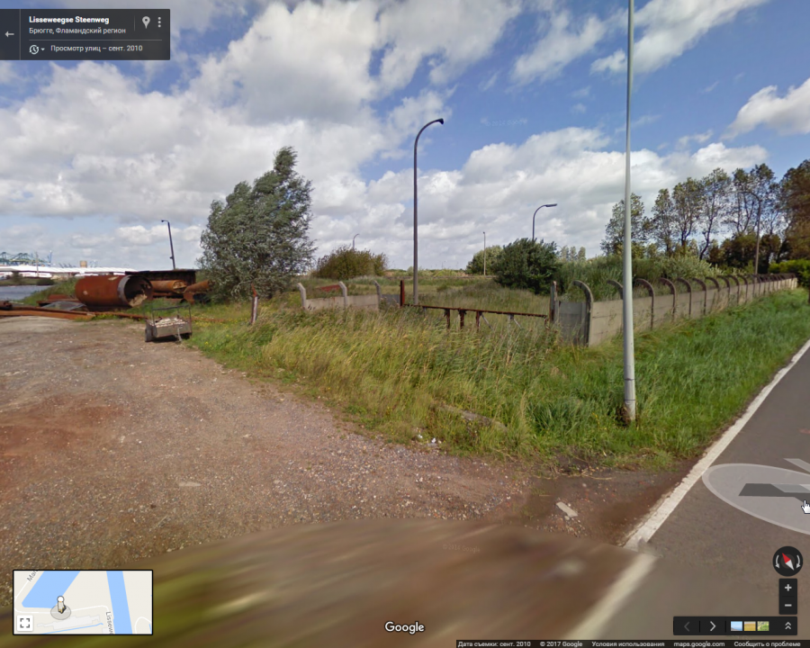 Бельгия, порт Северного моря Зебрюгге в городе Брюгге. Возле места швартовки земснарядов (Oud Ferrydok) заброшенный треугольник с недостроенной и заброшенной инфраструктурой порта. Даже в паразитирующем Евросоюзе капитализм приводит к деградации и запустению.