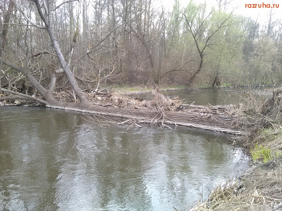 Россия , Центральный федеральный округ , Черноземье , Курская область , Курский район , Курск , Железнодорожный округ , Стрелецкая слобода , 3 Стрелецкая улица , Кривец , Тускарь , река , дерево , упало , перегородило , поток , вода , завал