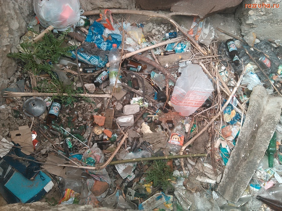 Посёлок Искра, дом 55, восточный торец, вход в подвал стал помойкой.