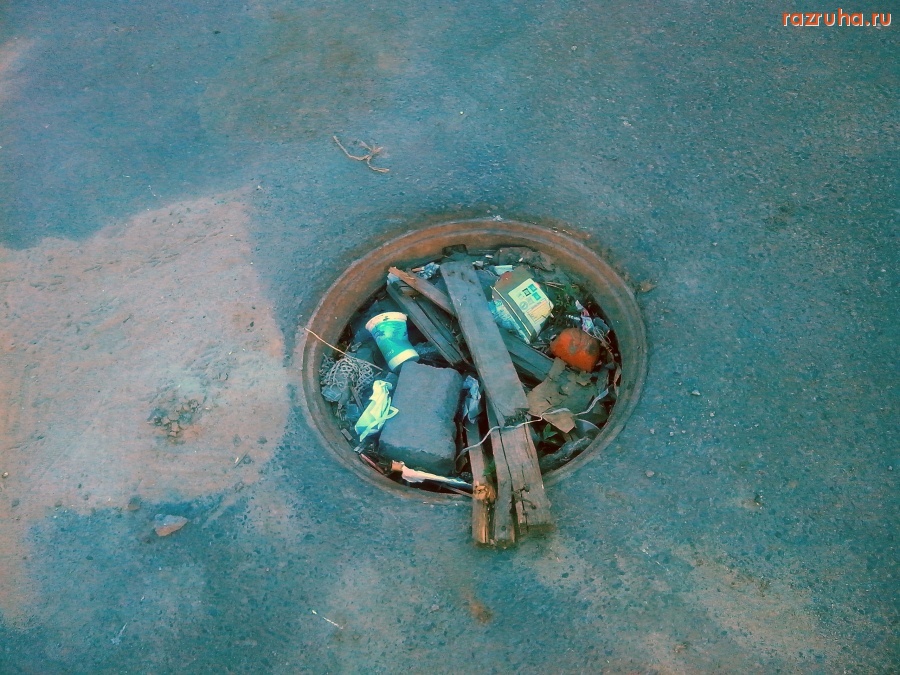 Помойка возле ТЦ "Западный" на 50 Лет Октября возле пиара ПЖИВ, ещё забитый по горловину открытый люк, капитализм.