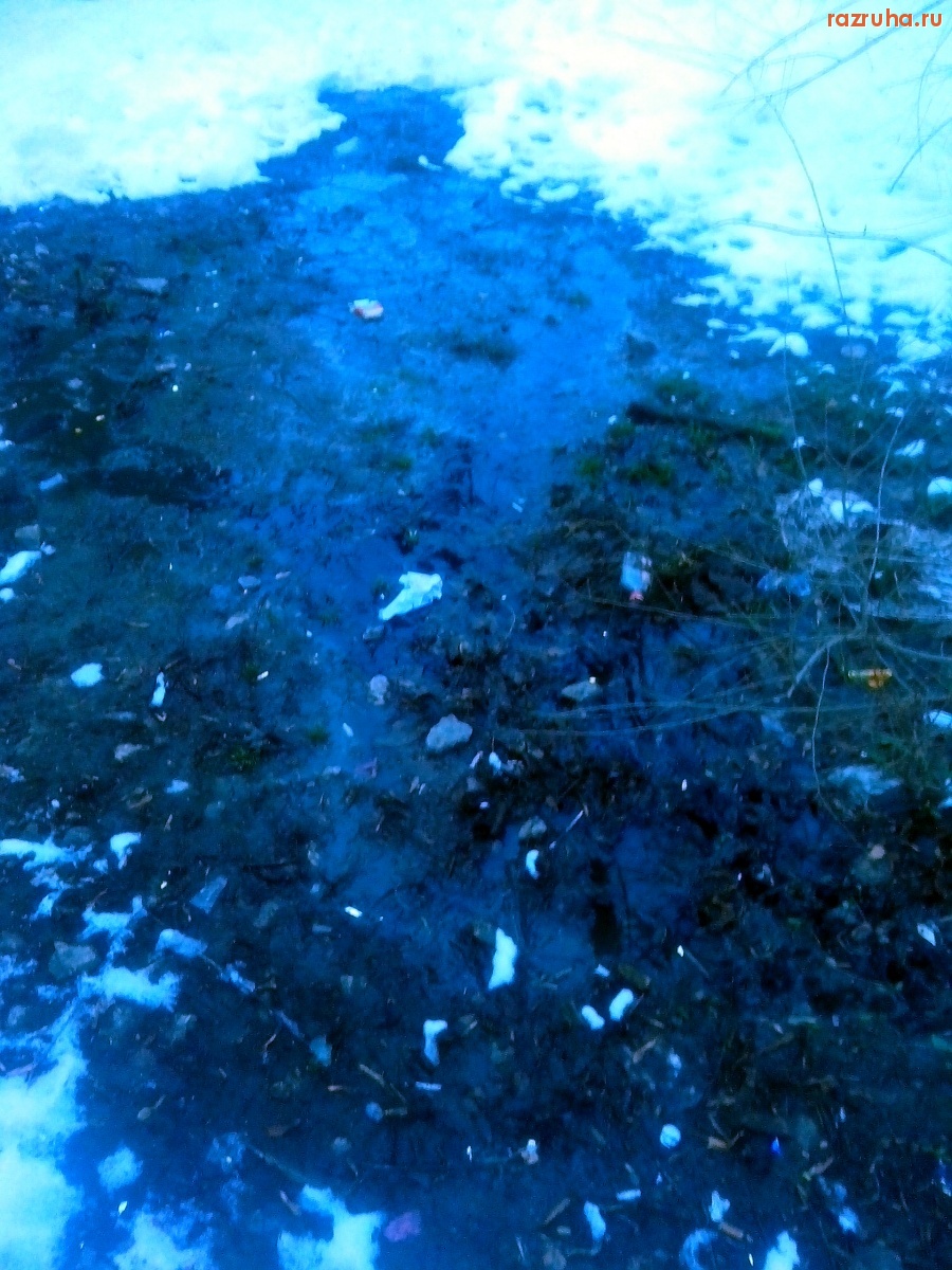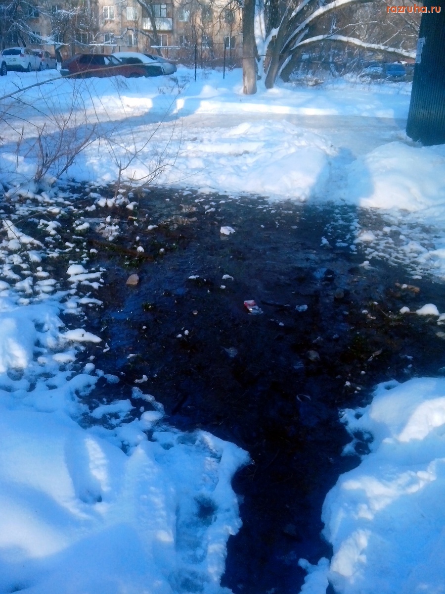Канализационный вонючий родничок за торговым зданием с пивнушкой (улица Ольшанского 41) - наступил другой год, а канализация всё течёт.