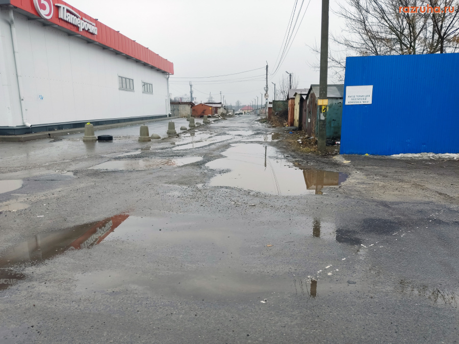На Сумской въезд в гаражи возле "Пятёрочки".