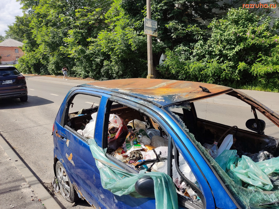 Улица Пигорева, в автомобиль накидали мусор.