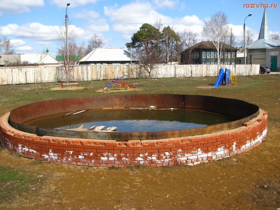 Этот "фонтан" строят уже года два или три, а пока это просто лужа с кирпичным ограждением
