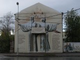 Описание: За красивым фасадом скрывается разрушенное здание. Крыши уже нет, остались щербатые стены.